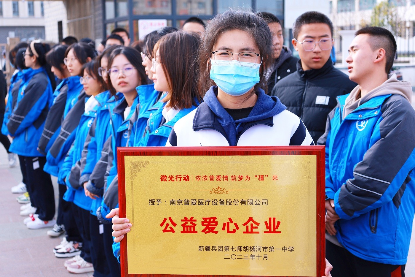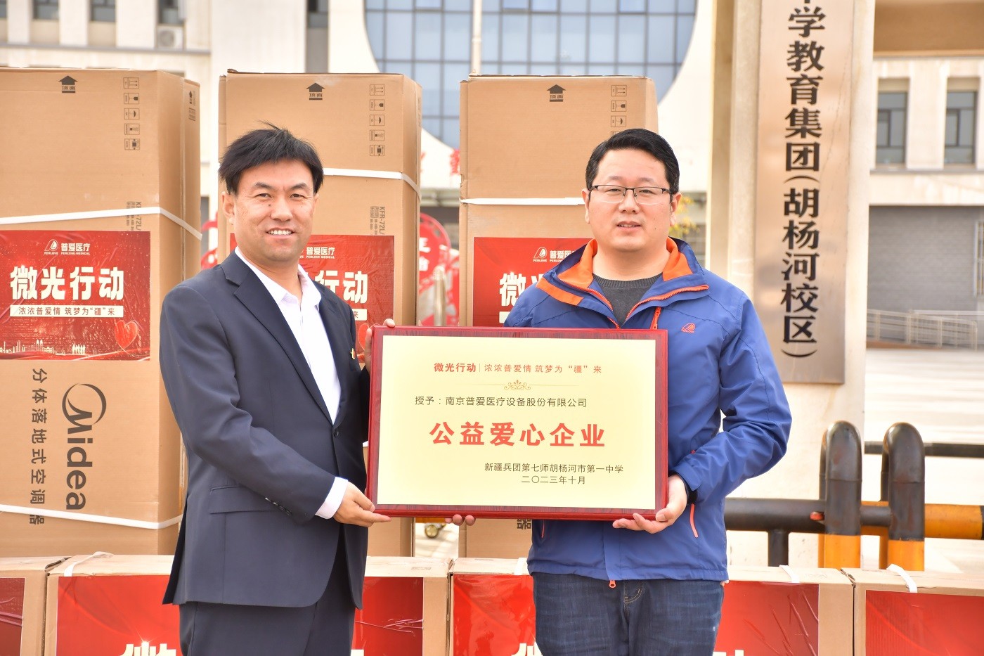 胡楊河市第一中學(xué)授予普愛(ài)醫(yī)療“公益愛(ài)心企業(yè)”稱號(hào)
