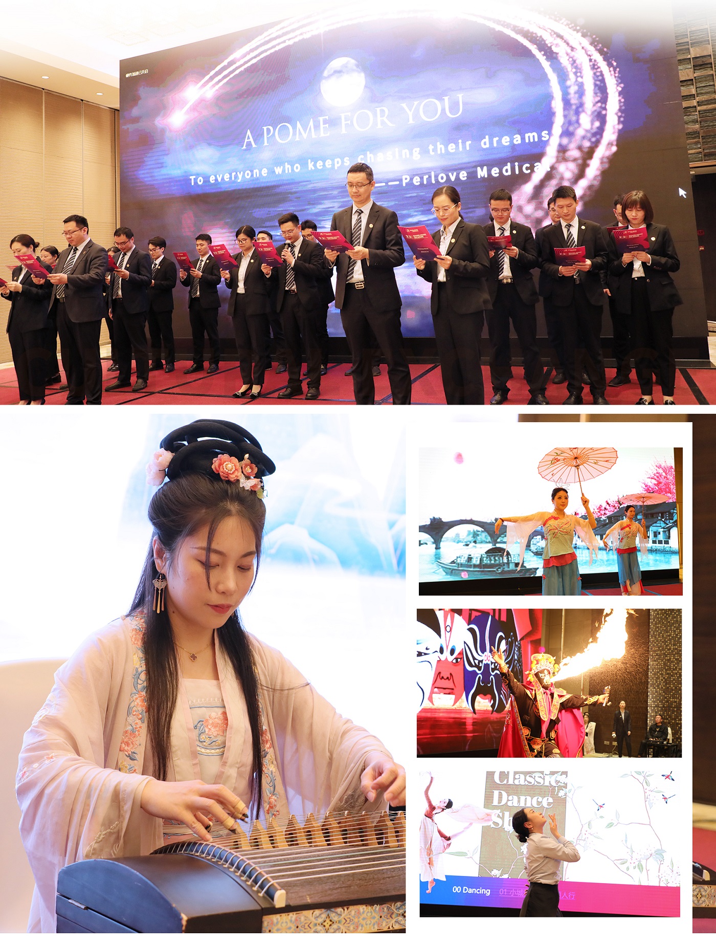 交流晚宴上,普愛醫(yī)療國際貿(mào)易部門的同事們呈現(xiàn)了一段中英雙語的詩歌朗誦《春江花月夜》,將中國古典詩詞的優(yōu)美意境傳遞給了每一位聽眾。中國古風(fēng)舞蹈、中國傳統(tǒng)樂器演奏和神奇的川劇變臉表演,引得現(xiàn)場客戶陣陣歡呼。