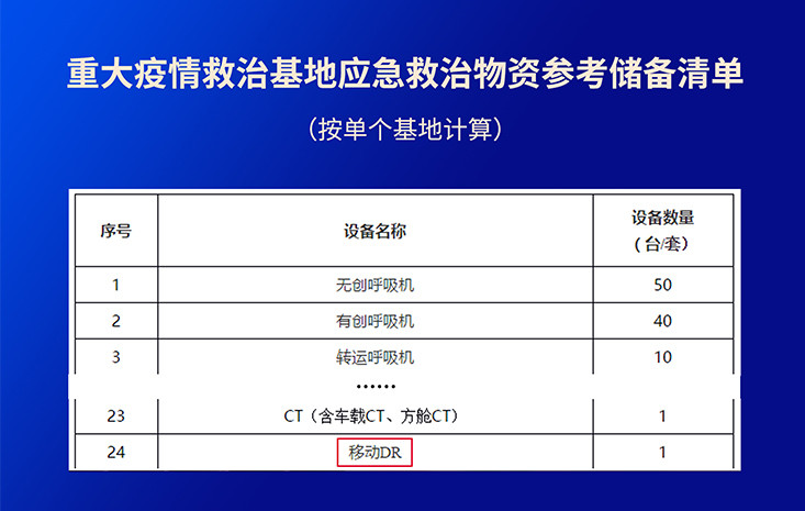 移動DR廣泛應用于急診科、ICU病房、新生兒科、手術室及骨科等臨床科室,對不宜移動的患者進行床邊攝影,尤其對術中、急、重癥患者及隔離區(qū)內傳染患者有更高的應用價值。疫情期間,移動DR被列入《重大疫情救治基地應急救治物資儲備清單》。