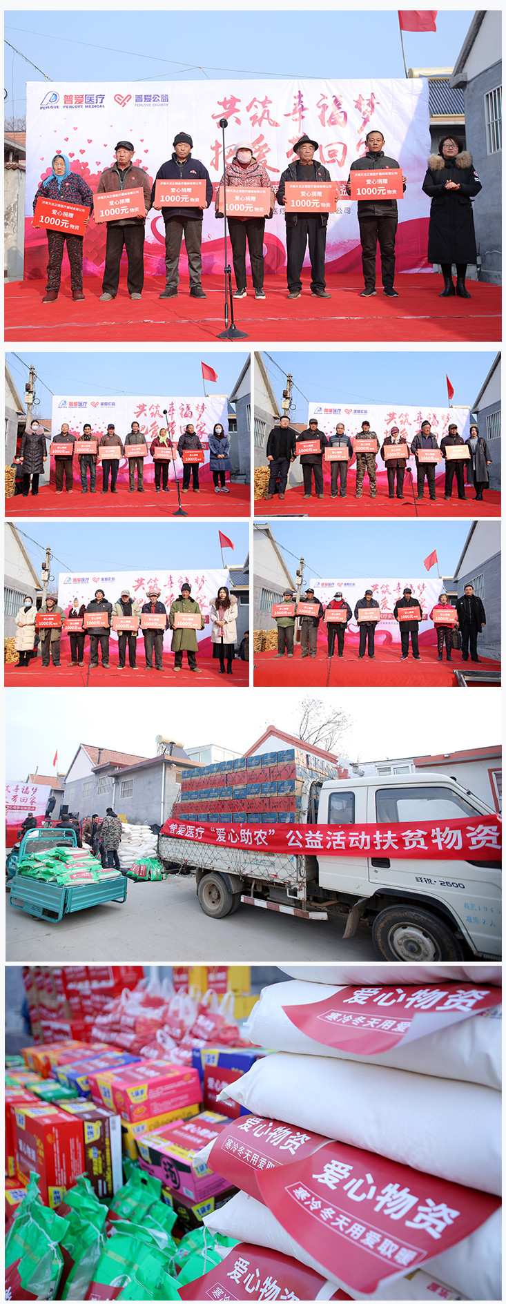 12月18日,普愛醫(yī)療攜手會員俱樂部成員在山東省萊州市柞村鎮(zhèn)大臺頭村舉辦“共筑幸福夢,把愛帶回家”社會公益助農(nóng)活動,為當(dāng)?shù)?0戶貧困家庭捐贈生活物資,用善舉傳遞愛心,讓溫暖在寒冬延續(xù)。普愛醫(yī)療副總經(jīng)理趙政文先生、會員俱樂部成員代表、柞村鎮(zhèn)大臺頭村村委書記王京成先生出席了本次活動。萊州市電視臺及萊州日報等媒體對本次“愛心助農(nóng)”公益活動進行了現(xiàn)場采訪報道。