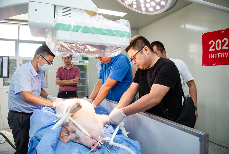 所有理論課程結(jié)束后,我們安排了動(dòng)物介入實(shí)操及觀摩,由南京市第一醫(yī)院、南京醫(yī)科大學(xué)專家及團(tuán)隊(duì)現(xiàn)場(chǎng)指導(dǎo)和操作,主要目的是讓我們學(xué)員更深刻的了解介入醫(yī)學(xué),通過(guò)本次臨床實(shí)操,讓他們對(duì)手術(shù)流程,相關(guān)器械之間的配合及手術(shù)技巧能更好的掌握。