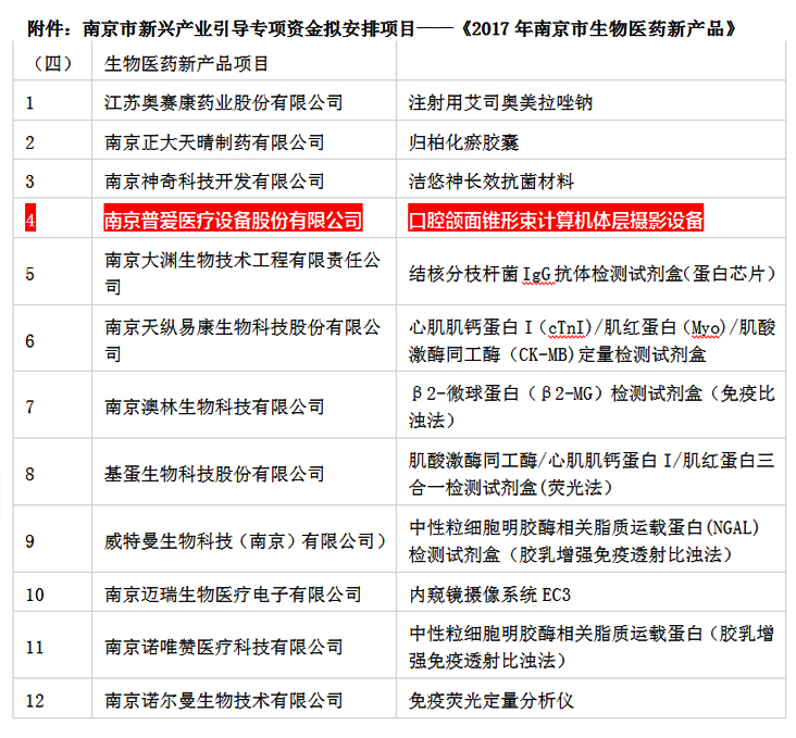 普愛醫(yī)療自主研發(fā)的重磅新品PLX3000A(口腔CBCT)成功入選《2017年南京市生物醫(yī)藥新產(chǎn)品項(xiàng)目》。這是普愛醫(yī)療繼2015年DR產(chǎn)品(PLX8500系列)、3D C形臂(PLX7200)、2016年動態(tài)平板C形臂(PLX7100 A),連續(xù)三年4個產(chǎn)品入選南京市生物醫(yī)藥新產(chǎn)品項(xiàng)目。