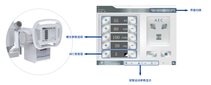 配備球管與平板聯(lián)動控制系統(tǒng),平板端上下移動時,球管端自動跟蹤。